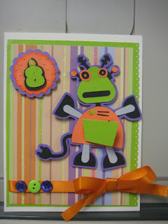 I used the cricut cartridges for both of these cards. I used the robotz cartridge to make the monster. I used Hannah Montana cartridge to make the guitar and sentiment.